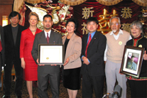 在熱鬧的新春聯(lián)誼會上,市大法學院向支持余百康上訴的市議員劉醇逸辦公室頒獎,感謝劉醇逸及其他的辦公室工作人員為余百康伸張正義所做出的努力。