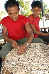 在有著濃濃的印尼民族風(fēng)情的巴厘島民族村,處處都留下了鄭和下西洋深深的印跡。中國(guó)的藤編工藝也在巴厘島民族村頗受當(dāng)?shù)啬贻p人青睞。據(jù)當(dāng)?shù)毓そ硞兘榻B,中國(guó)的藤編工藝技術(shù)也是當(dāng)年鄭和下西洋時(shí)傳授給當(dāng)?shù)氐。作?蔣振江