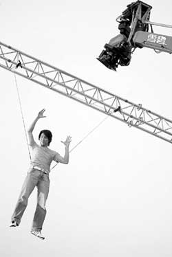 在陶喆新專輯《太平盛世》中的主要歌曲的伴奏下,陶喆第一次在鏡頭前表演了高空驚險(xiǎn)動作。(郝曉楠)