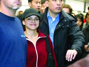 剛剛結(jié)束在漢城的個(gè)唱,諾拉·瓊斯及樂(lè)隊(duì)、工作人員一行20多人直接飛到北京。由于她一向低調(diào),故機(jī)場(chǎng)除了幾家媒體接機(jī)外,未見(jiàn)歌迷。在飛機(jī)落地半個(gè)多小時(shí)后,頭戴黑色棒球帽、身著紅色運(yùn)動(dòng)衣的諾拉·瓊斯在工作人員的包圍中走出了安檢口。等候多時(shí)的攝影記者們剛舉著機(jī)器沖上前,就被主辦方唐西文化請(qǐng)來(lái)的4名保衛(wèi)人員攔住。諾拉·瓊斯身邊的一男子立即把嬌小的她護(hù)在臂彎里,客氣地拒絕了記者的拍照。原本滿(mǎn)臉倦意的諾拉·瓊斯露出了歉意的笑容,在前呼后擁中直接上了等候在外的別克車(chē)上。