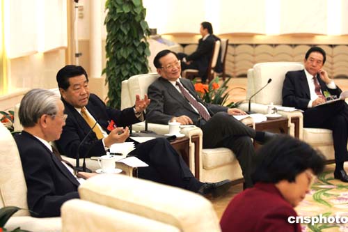 中共中央政治局常委、全國政協(xié)主席賈慶林三月十日在北京人民大會堂出席臺灣省人大代表團(tuán)會議,與代表一起審議人大會議報(bào)告。國務(wù)委員唐家璇、國臺辦主任陳云林在座。作者:毛建軍