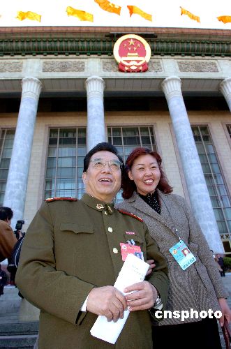 三月十二日下午,全國政協(xié)十屆三次會(huì)議在北京人民大會(huì)堂閉幕,全國政協(xié)委員、著名歌唱家李雙江走出人民大會(huì)堂。作者:陳文