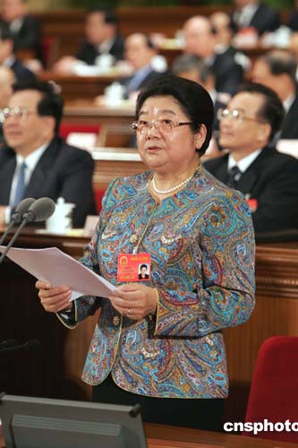 十屆全國人大三次會(huì)議三月十三日在北京人民大會(huì)堂舉行第四次大會(huì),胡錦濤在會(huì)上當(dāng)選中華人民共和國中央軍事委員會(huì)主席。顧秀蓮副委員長主持會(huì)議。作者:毛建軍