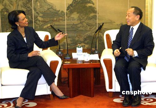 同日,中國(guó)國(guó)務(wù)委員唐家璇會(huì)見了賴斯。唐家璇說,處理好中美兩國(guó)關(guān)系需要增強(qiáng)相互理解和互信。中方愿與美方共同努力,牢牢把握合作這條主線,妥善處理分歧,共同維護(hù)和促進(jìn)亞太地區(qū)乃至世界的和平、穩(wěn)定和繁榮。