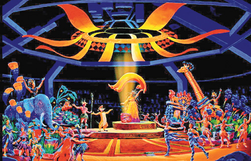 旅客亦可坐在一個容納二千二百人,以及有三百六十度觀景的劇院內欣賞另一出歌舞劇“獅子王慶典”,八十五名演藝人員會在每天八次,每次三十分鐘的演出中,將《獅子王》的故事表演發(fā)揮得淋漓盡致。在歌舞劇中,旅客可聽到由Elton John演唱的“Can You Feel The Love Tonight?”,以及其它《獅子王》的經典金曲。