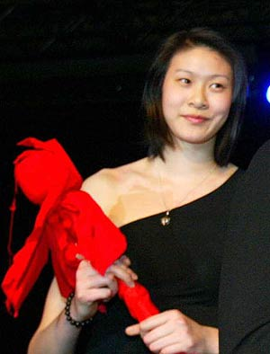 一襲黑色長裙,露出半邊肩膀,是好萊塢剛流行過的式樣。趙蕊蕊顯然是無法習(xí)慣這樣性感的裝束,羞答答地上了臺。直到迎上帥哥索普贊許的眼神,更是露出一臉羞澀的笑容!斑真不習(xí)慣這樣穿,別扭極了。”說話聲音一如平時的爽朗,“還是運動衣更符合我的氣質(zhì)。”這樣的曳地長裙,還會再穿么?“也許不會了吧。”