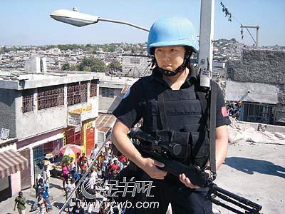 “不出門不知道想家,不出國不知道愛國。踏出國門,讓我更加體會到五星紅旗的分量,到海地維和,是我無悔的選擇!25歲的北京女孩賀巍,說出了13朵警花共同的心聲。