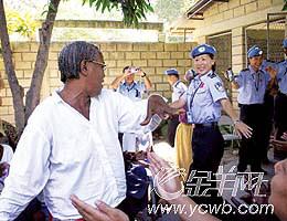 高曉嵐是防暴隊的女戰(zhàn)斗隊員,來自北京市公安局海淀分局,去年11月31日,她和十幾名隊員到駐地附近一家教會慈善學校和老人活動點,開展社區(qū)警務活動。見到中國維和警察,老人們高興地鼓著掌、唱著歡快的歌迎接他們,蒙古族的高曉嵐為老人們動情的歌聲所感染,不由自主地在歌聲中跳起了蒙古族舞蹈。這時,一位老太太突然走出人群,一邊唱著一邊與她一起翩翩起舞。老人是那樣的熱情和奔放,她倆在周圍更加激越的歌聲和掌聲中忘我地跳著……