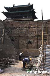 去年十月十七日下午,山西省平遙縣古城南門東側(cè)外墻突然發(fā)生墻體倒塌,倒塌范圍長十七米,高十多米,倒塌厚度為三米。古城墻坍塌修復(fù)方案去年底已經(jīng)通過國家文物保護專家的論證,并報請國家文物保護管理部門批準(zhǔn)。