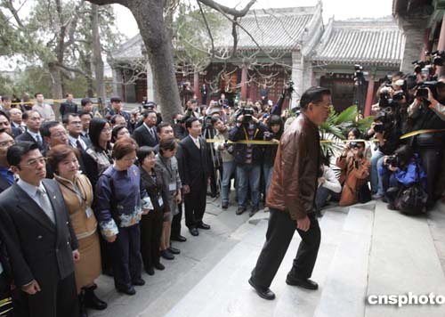 中國(guó)國(guó)民黨副主席江丙坤三月三十一日攜參訪團(tuán)全體成員,拜謁北京香山碧云寺內(nèi)的孫中山紀(jì)念堂,并敬獻(xiàn)花圈。作者:毛建軍