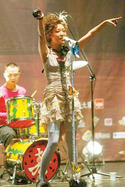 首都劇場(chǎng)向來(lái)被認(rèn)為是戲劇藝術(shù)的最高殿堂,所以昨天的主持人李霞露面的第一句話就是“我太興奮了!終于站在了人藝的舞臺(tái)上!”隨后,她請(qǐng)出了陳琳的老板沈永革講話,竹書(shū)公司的打擊樂(lè)團(tuán)“東方閃打”表演,然后是新專輯主打歌《13131》MV的首播,就在大家以為陳琳就要出場(chǎng)的時(shí)候,MV中的4位女演員又上場(chǎng)現(xiàn)場(chǎng)表演了一番MV中的情節(jié),到這時(shí),大幕拉開(kāi),陳琳才和樂(lè)隊(duì)一起出現(xiàn)在舞臺(tái)上。隨后,陳琳的演唱和制作人、嘉賓的亮相等等環(huán)節(jié)交融在一起,與大多數(shù)平鋪直敘的發(fā)布會(huì)相比,這樣的新專輯發(fā)布可謂費(fèi)盡了心思。