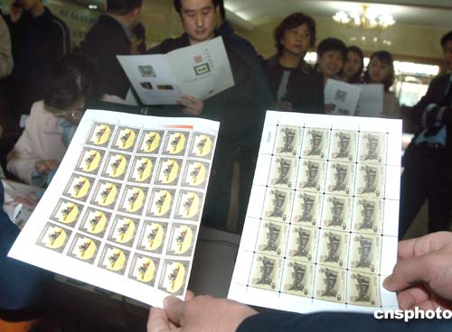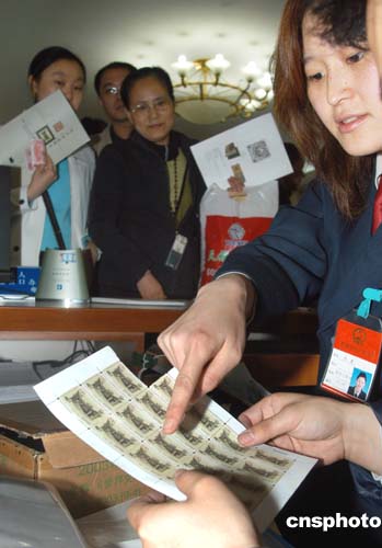 | 四月五日,新中國第一套地方版印花稅票《北京印花稅票之一北京胡同》在北京市各區(qū)縣地稅局向社會(huì)發(fā)售。此套印花稅票有九種面值,由北京市地方稅務(wù)局發(fā)行、國家郵政局郵票印制局印制,極具收藏價(jià)值。圖為北京市東城區(qū)地稅局工作人員展示新舊兩版印花稅票,圖右為新版印花稅票。作者:張宇