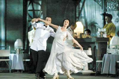 演出的開場很新鮮,一面虛擬的大幕徐徐拉開,巨大的銀幕上出現(xiàn)了當年那部老電影《卡薩布蘭卡》的片頭,黑白鏡頭將觀眾帶回到半個世紀前發(fā)生一段浪漫故事的卡薩布蘭卡。因為是首次合成排練,多數(shù)演員沒有穿演出服。盡管如此,演員們的精彩表演還是贏得了在場記者的掌聲。(張學軍)