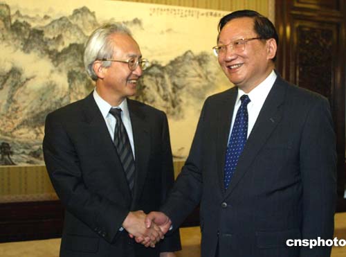 中新社北京四月十二日電(記者孫宇挺)國(guó)務(wù)委員唐家璇今天在北京會(huì)見(jiàn)來(lái)訪的日本共同社社長(zhǎng)山內(nèi)豐彥時(shí)指出,今年是世界反法西斯戰(zhàn)爭(zhēng)和中國(guó)人民抗日戰(zhàn)爭(zhēng)勝利六十周年,希望日本政府本著“以史為鑒、面向未來(lái)”的精神,妥善處理歷史等有關(guān)問(wèn)題,使中日關(guān)系能夠得到改善和發(fā)展。