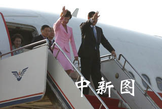 連戰(zhàn)一行乘機(jī)于今天下午四點(diǎn)四十分抵達(dá)南京祿口機(jī)場,受到熱烈歡迎。隨后連戰(zhàn)在機(jī)場停機(jī)坪三十米的紅地毯中央向中外記者發(fā)表了講話。