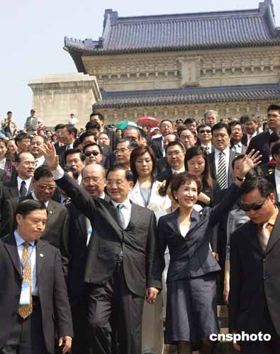 今天,得知連戰(zhàn)將率中國(guó)國(guó)民黨大陸訪問(wèn)團(tuán)在南京拜謁中山陵,近萬(wàn)南京市民自發(fā)來(lái)到中山陵,歡迎連戰(zhàn)一行。
