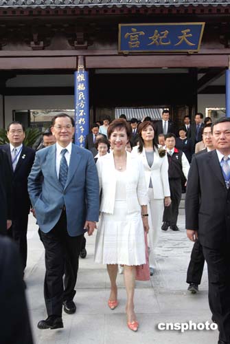 參觀結(jié)束后,連戰(zhàn)與國民黨主要領(lǐng)導(dǎo)人在天妃宮前合影留念。連戰(zhàn)還為天妃宮題詞“慈航普渡”。