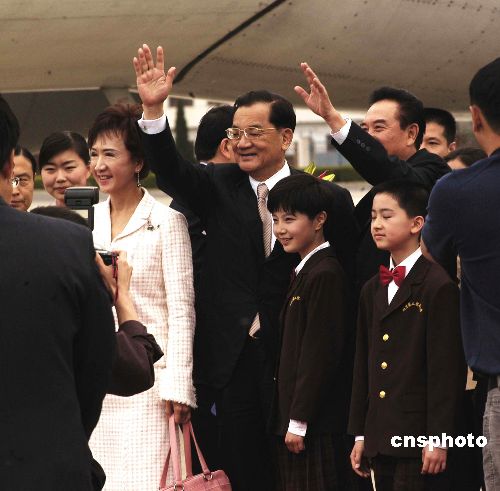 中新社北京四月二十八日電(記者趙江濤)中國(guó)國(guó)民黨主席連戰(zhàn)率領(lǐng)國(guó)民黨大陸訪問(wèn)團(tuán)一行七十多人于今天上午抵達(dá)北京首都機(jī)場(chǎng)。連戰(zhàn)在機(jī)場(chǎng)面對(duì)中外媒體表示,訪問(wèn)團(tuán)將同胡錦濤總書記和其他領(lǐng)導(dǎo)人,就兩岸重要的和平以及經(jīng)貿(mào)文化的交流議題作意見交換。