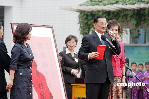 中新網(wǎng)4月30日電 中國(guó)國(guó)民黨主席連戰(zhàn)今日(30日)下午回到母校——后宰門小學(xué),并向該校捐贈(zèng)包括《臺(tái)灣通史》等三份禮物及10萬元捐款。