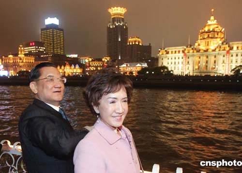 今晚近十時,在富有江南風韻的民樂演奏《花好月圓》和《紫竹調》的伴奏下,連戰(zhàn)夫婦坐船眺望兩岸夜景,當船行至和平飯店時,連戰(zhàn)主動起身遠眺。此處乃是一九九八年汪辜上海會談所在。
