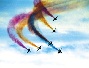 赤橙黃綠青藍紫,誰持彩練當(dāng)空舞?新型表演機為在藍天織就更美的彩練,還專門加裝了拉煙控制盒。此前,拉煙系統(tǒng)都是經(jīng)過改裝而成的。說起拉煙技術(shù),在20世紀80年代初期,僅有美國和蘇聯(lián)少數(shù)國家具備,但它們實行技術(shù)封鎖。為了打破這種局面,表演隊經(jīng)過上千次試驗,先后攻克白煙、彩煙難題,終于達到世界先進水平。