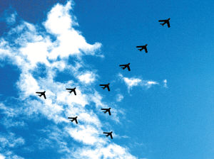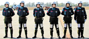 素有“藍天儀仗隊”美譽的表演隊在這次換裝中也體現(xiàn)出優(yōu)良的素質(zhì)作風(fēng)。李隊長告訴筆者,這么大規(guī)模的換裝全部由表演隊員自己接機,這在表演隊成立以來還是第一次。到接裝地點后第3天,他們就開始了試飛,不到半個月便接裝完畢。這種情況在空軍也很少有。