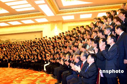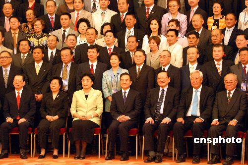 五月二十日,中國國務院總理溫家寶、國務委員唐家璇、全國政協(xié)副主席劉延東、全國政協(xié)副主席羅豪才、國務院僑辦主任陳玉杰等在北京人民大會堂會見“第三屆世界華僑華人社團聯誼大會”的全體與會代表并合影留念。作者:張勤