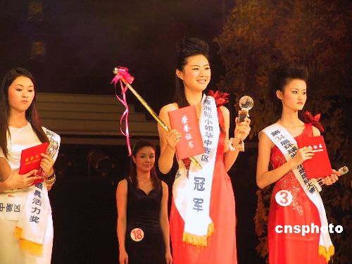 6月15日下午,第34屆2005年環(huán)球洲際小姐大賽中國華中賽區(qū)總決賽在湖南舉行,來自湖北的選手魏巍(中)獲得冠軍。據悉,“環(huán)球洲際小姐國際大賽”起始于1970年,至今有2位中國佳麗進入前三名。今年的中國賽區(qū)總決賽將于6月28日在長沙舉行。作者:劉雙雙
