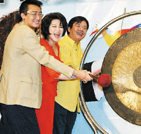 昨天蔡琴當起了媒婆,帥哥律師謝震武擔任見證人,見證果陀劇團與大陸上海星世代娛樂公司結緣。蔡琴與果陀藝術總監(jiān)梁志民,還有上海星世代娛樂董事長徐毅簽約,將“跑路天使”引進內(nèi)地,新名稱“跑路救天使”引起大陸一陣狂熱,北京、上海共5場演出,目前已經(jīng)開放售票,據(jù)了解,票房比蔡琴去年的個唱還暢銷,而4萬人次的演出也將挑戰(zhàn)蔡琴的身體狀況。蔡琴表示,由于視力不佳,她無法與舞臺上的其它演員直接對戲,所以必須彩排更多次,一個人不斷重復練習,將所有的走位及對話統(tǒng)統(tǒng)都背起來,比起一般正常情況下演出,更加辛苦,蔡琴開玩笑說:“我的票價要調(diào)漲啦!”