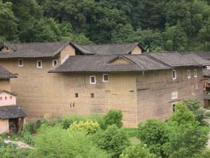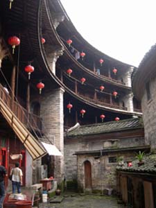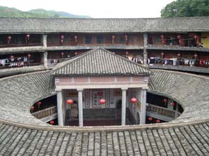 永定縣境內(nèi)的大型方型、圓型土樓有8000余座,最壯麗堂皇的、最有代表性的是洪坑村振成樓。這一“土樓王子”按八卦觀念結(jié)構(gòu)建造,卦與卦之間設(shè)防火墻,坐北朝南,調(diào)節(jié)陰陽。每卦與內(nèi)層一樓采用北方四合院格式。全樓的設(shè)施布局既有蘇州園林的印跡,也有古希臘建筑的特點(diǎn)?胺Q中西合璧的建筑奇葩。1995年它的建筑模型與北京天壇作為中國(guó)南北圓形建筑代表參加了美國(guó)落杉磯世界建筑展覽會(huì),引起了轟動(dòng),一直被稱為“世界上獨(dú)一無二的神話般的山區(qū)土樓建筑”。