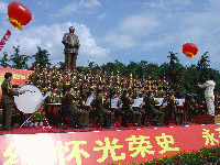 中新社長沙六月二十五日電(鄧霞周海清)為紀(jì)念毛澤東親手創(chuàng)建中共韶山特別支部八十周年,大型音樂舞蹈史詩《東方紅》交響合唱音樂會,今日在毛澤東的家鄉(xiāng)湖南韶山進(jìn)行首次實景演出。四千余人在毛澤東銅像下聆聽那些傳唱了半個世紀(jì)的熟悉的經(jīng)典旋律。