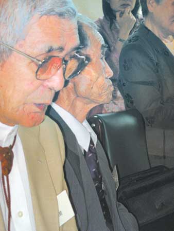 走進(jìn)會(huì)場(chǎng),他們坐到座位上顯得很平靜,此時(shí)的撫順戰(zhàn)犯管理所紀(jì)念抗日戰(zhàn)爭勝利60周年大會(huì)上,數(shù)十名新聞?dòng)浾邔z像機(jī)、照相機(jī)的焦點(diǎn)對(duì)準(zhǔn)他們,面對(duì)記者的提問,他們一一作答。和他們不同的是,隨同而來的日本友人則用攝像機(jī)記錄著這難忘的時(shí)刻。
