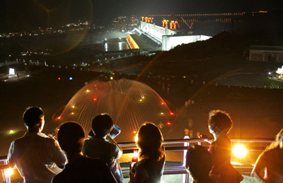從明天起,斬斷長江的三峽大壩,每天將允許1000名普通游客把這個龐然大物“踩”在腳下!7月1日,三峽大壩壩頂將首次對游客開放,但今年的開放時間因施工需要到9月30日截止,到明年汛期再行開放。本報記者于昨日趕到壩區(qū)并星夜上壩,打探到壩頂旅游臺前幕后諸多細節(jié)。