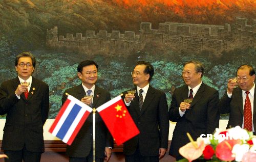 中新網(wǎng)7月1日電 據(jù)新華網(wǎng)報道,在中泰兩國建交30周年之際,10項雙邊經(jīng)貿(mào)合作協(xié)議于1日在北京簽署,項目內容涉及能源、礦產(chǎn)、食品、零售等多個領域。國務院副總理回良玉和泰國總理他信共同出席了簽字儀式。