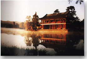 避暑山莊造園體現(xiàn)出“集天下景色于一園,移天縮地于一方”的帝王思想。形貌如中華成一統(tǒng),兼具南秀北雄之美。避暑山莊始建于1703年,直至1792年歷時89年建成124組建筑,其中皇帝命名的有七十二景,總建筑面積約10萬余平方米。