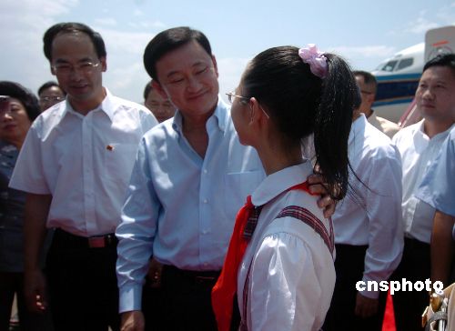 中新社梅州七月二日電(記者柯小軍)今天下午一點(diǎn)半,一架波音客機(jī)在廣東梅州梅縣機(jī)場(chǎng)剛剛停穩(wěn),一群記者便迫不及待地一擁上前,包圍了舷梯車,期待著拍下泰王國(guó)總理他信從飛機(jī)走出的鏡頭。