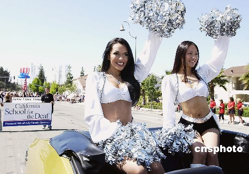 美西佛里蒙特市舉行七月四日“永遠(yuǎn)的星條”國(guó)慶節(jié)游行,圖為游行隊(duì)列中的美女啦啦隊(duì)員。作者:陳鋼