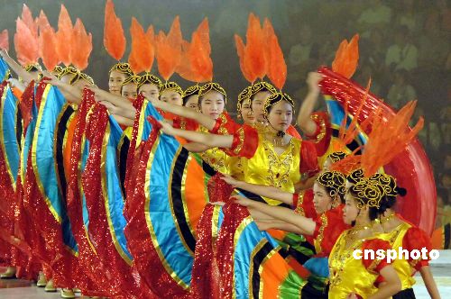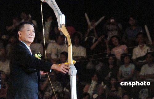 開幕式上澳門特首何厚鏵扳弓射箭點(diǎn)燃圣火