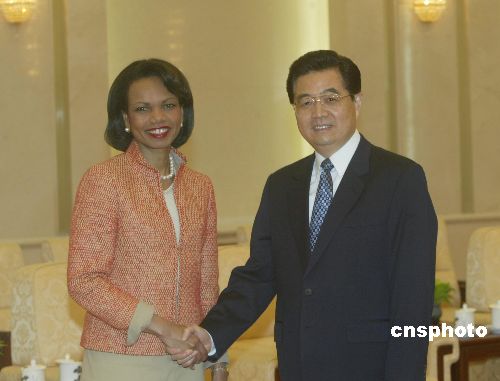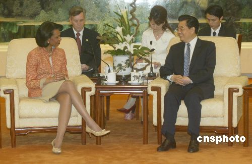 中新社北京七月十日電(記者李靜)中國國家主席胡錦濤十日會見美國國務(wù)卿賴斯時表示,相信賴斯此次訪華將有助于雙方加強(qiáng)溝通,增進(jìn)理解,促進(jìn)合作,有助于促進(jìn)中美關(guān)系健康穩(wěn)定地向前發(fā)展。