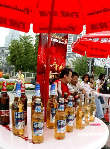 | 2005年7月15日,國家質(zhì)檢總局召開新聞發(fā)布會(huì),公布對國產(chǎn)以及部分國外品牌啤酒的抽查檢測結(jié)果,這次啤酒國家監(jiān)督抽查,共抽查了221種啤酒產(chǎn)品。檢驗(yàn)的科學(xué)數(shù)據(jù)標(biāo)明,國內(nèi)生產(chǎn)的啤酒甲醛含量是符合國家強(qiáng)制性標(biāo)準(zhǔn)和世界衛(wèi)生組織有關(guān)規(guī)定的,是安全的,廣大消費(fèi)者可以放心飲用。同時(shí),也表明國產(chǎn)名牌啤酒完全可以與純進(jìn)口啤酒相媲美。圖為啤酒街頭促銷。作者:張和平
