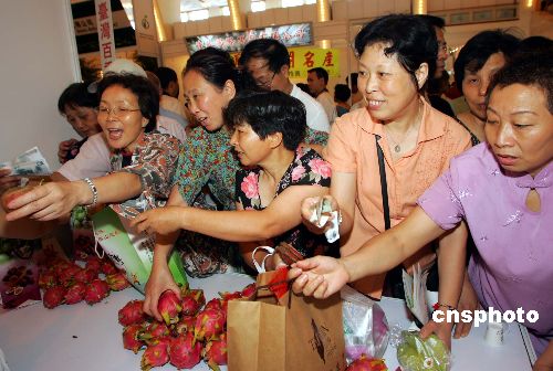 中新社上海七月十八日電(記者 許曉青 ;萦)迄今規(guī)模最大的兩岸農(nóng)業(yè)合作展——海峽兩岸農(nóng)業(yè)合作展覽暨臺灣農(nóng)產(chǎn)品展銷會今天在上海展覽中心開幕。