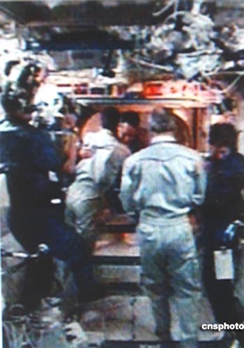 對(duì)接前,機(jī)長(zhǎng)科林斯和駕駛員凱利駕駛飛機(jī)后翻,讓空間站機(jī)組為發(fā)現(xiàn)號(hào)的防熱裝置拍照。來(lái)自太空不同角度的航天飛機(jī)圖像史無(wú)前例,為NASA這次飛行和未來(lái)的飛行提供了寶貴的資料。