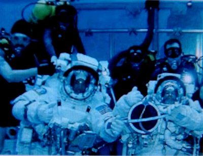 美國公布發(fā)現(xiàn)號宇航員訓(xùn)練太空行走的照片(圖)