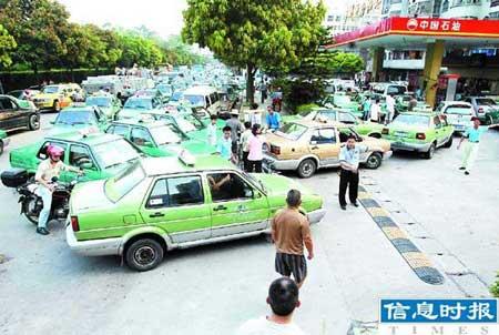 在普遍“貧油”的狀況下,也有例外情況。在天府路新力加油站,記者見(jiàn)到了排隊(duì)加90#油的出租車長(zhǎng)龍。由于等待加油的車太多,天府路一時(shí)路塞。而花地大道廣中加油站自稱有足夠的油可加。