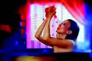 據(jù)悉,這是蕭薔飾演的女主角史紅英婚前的一次沐浴,她將在婚禮上行刺夫婿為被害的江湖俠士報仇。因此,沐浴戲要充分表現(xiàn)人物的悲壯美。整場戲拍了2個多小時,蕭薔一絲不茍,表演十分到位。
