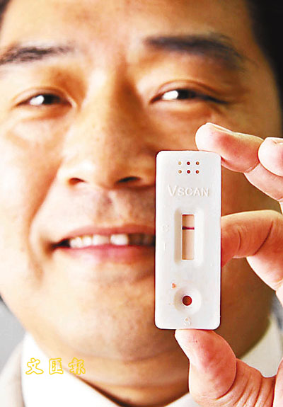 蔣凌輝說,這套測試器的優(yōu)點是快速,可自行在家中進行測試,只需將手指的血液滴進檢驗器上,15分鐘后會顯示結果,避免患者求診時感到尷尬或被歧視的疑難。