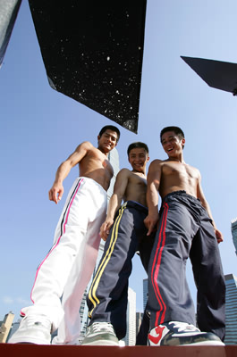 中新網8月16日電 據(jù)香港《大公報》報道,郭富城日前為某運動品牌拍攝廣告,名為“三城主義”,內容是三個形態(tài)十分相似的型男,在一個天臺擂臺“比舞”,演繹一種現(xiàn)在歐美巴西十分流行的CapoeiraDance(卡波耶拉舞),以手腿相碰作翻騰,跳出極具動感線條優(yōu)美之舞動動作。