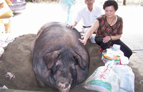 此外,動保團(tuán)體指出,因為增重比賽的利潤大,有飼養(yǎng)者為了增加神豬的重量,獲取更高利潤,不擇手段在過磅前將砂、鉛或錫強(qiáng)行灌入神豬的胃中;等到要宰殺前時,就用尖刀刺入神豬的喉嚨,還需將尖刀前后移動,讓傷口更大,神豬不?藓稹⒔馄、取內(nèi)臟,都已違反動保法與畜牧法。