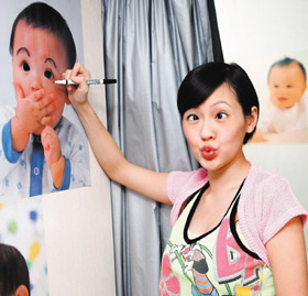 中新網(wǎng)8月19日電 據(jù)臺(tái)灣媒體報(bào)道,自從小S懷孕以后,八大對(duì)小S百般禮遇,除了體諒她因?yàn)閼言卸鴮⒁V拱舜髪蕵?lè)百分百的錄像以外,細(xì)心的工作人員還在她的化妝間里,布置了將近10幅寶寶的海報(bào),希望小S“看著可愛(ài)的寶寶,就可以生出可愛(ài)的寶寶!