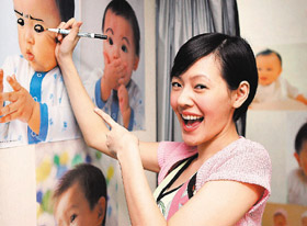 不過(guò)小S雖然已經(jīng)成為半個(gè)媽媽,但是童心絲毫未減,面對(duì)著可愛(ài)的寶寶海報(bào),她隨性的拿起麥克筆,就對(duì)海報(bào)上的寶寶“施以毒手”,幫寶寶們畫了“粗”眉毛以及“深邃”眼睛,還開(kāi)心得不能自己。